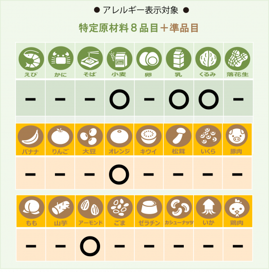 (原材料の一部に小麦、乳、アーモンド、オレンジ、くるみを含む)
